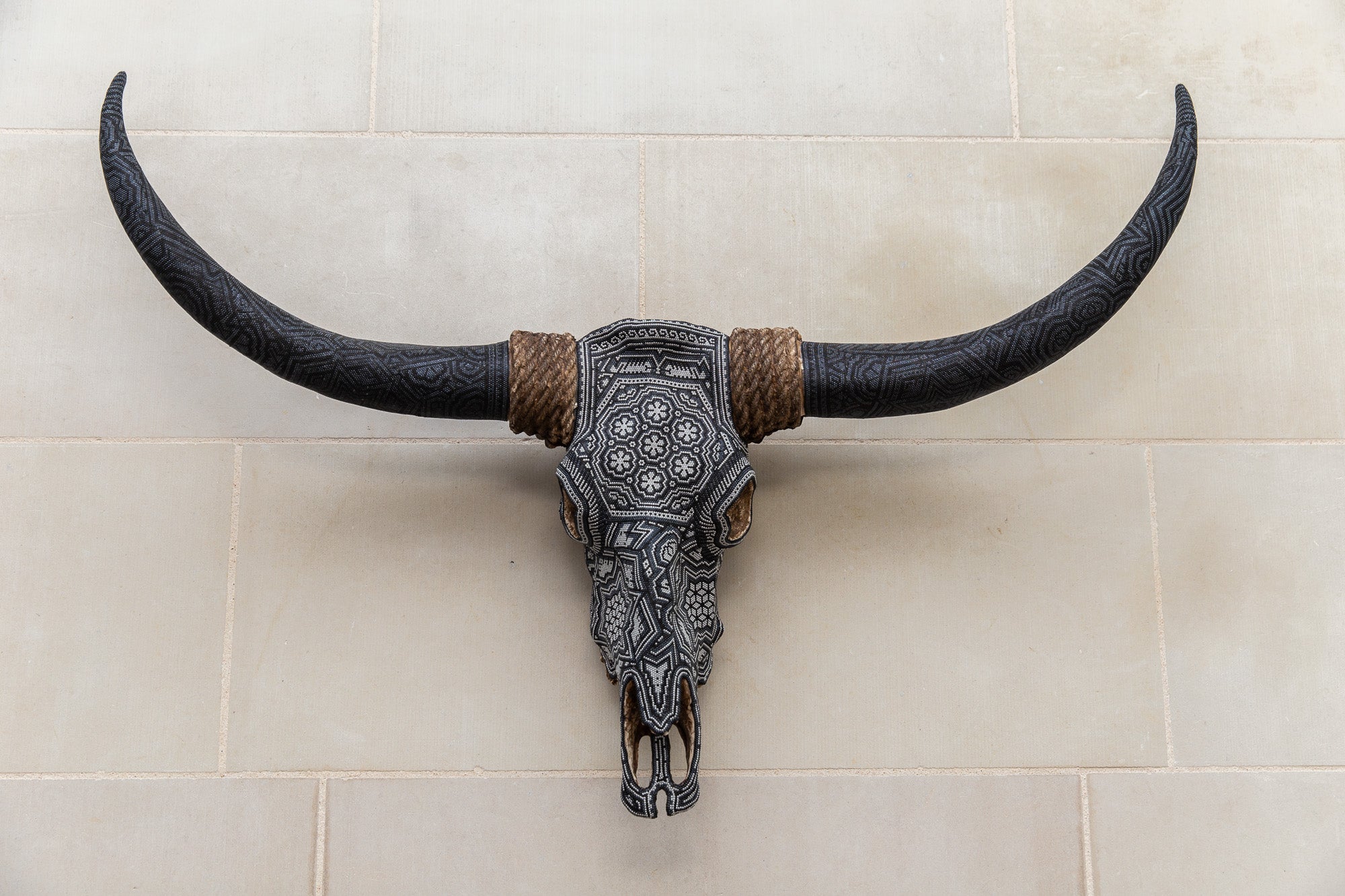 Cada cuenta y detalle ha sido cuidadosamente colocado a mano por artistas huicholes, convirtiendo a cada cabeza de toro en una obra maestra única e irrepetible.