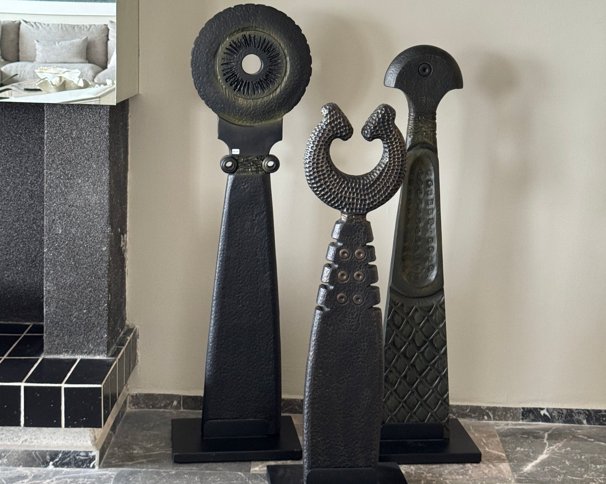 Sergio Galán ha trabajado con escultura desde 1979, experimentando con materiales para desarrollar una técnica original a través del corte, tallado, pulido, ensamblaje y soldadura. Su trabajo es intuitivo y no tiene pretensiones de elaborar ideas complejas, sino más bien evocar objetos ceremoniales de culturas tribales y ciudades extintas.