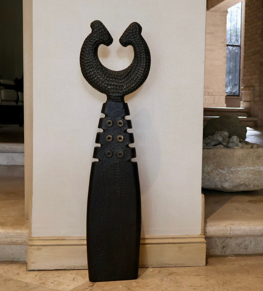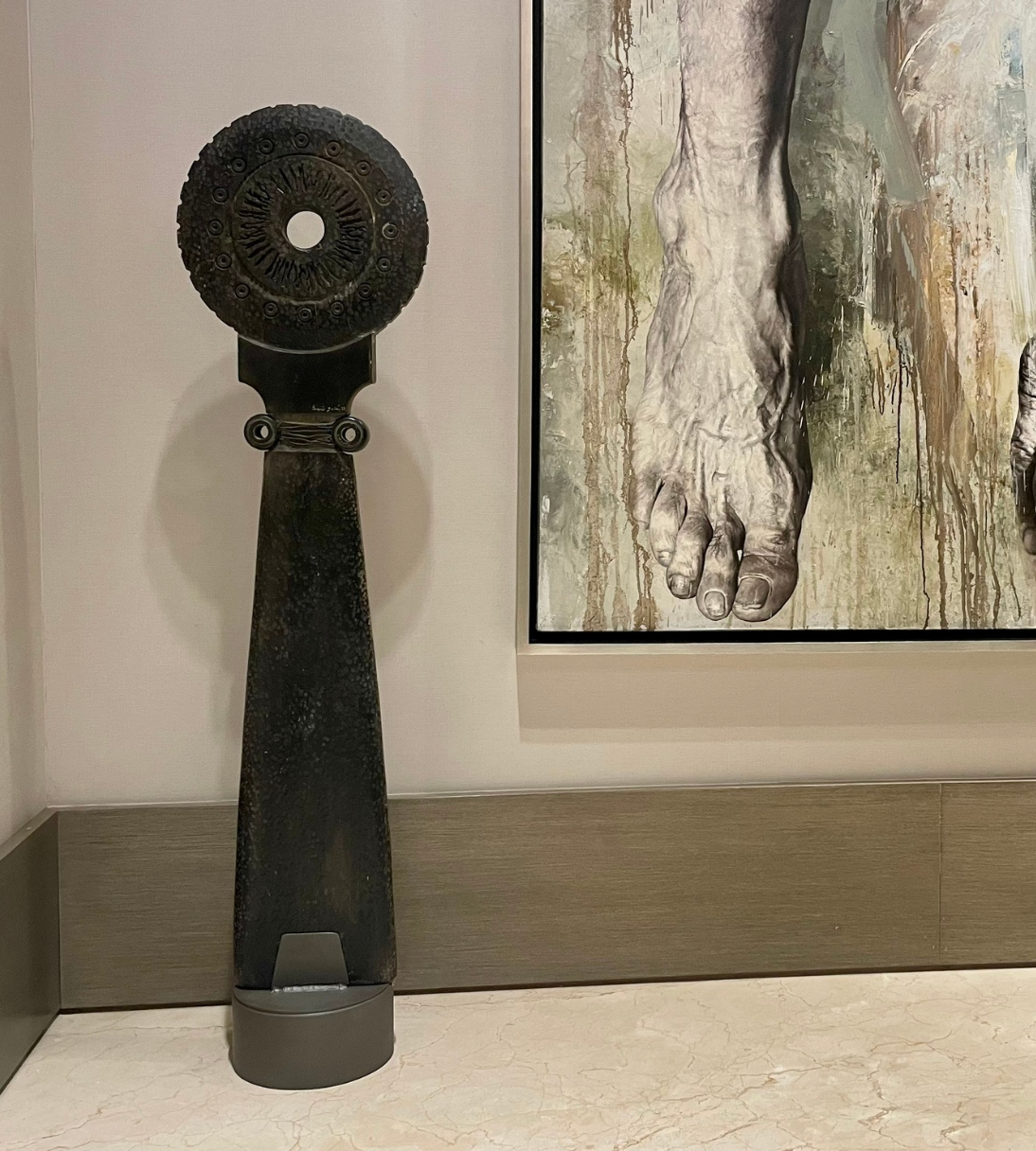 Sergio atiende a la solución formal de cada pieza, creando un boceto y luego entregándose al placer de trabajar directamente con el material. El resultado es capaz de convocar en el espectador una experiencia silente, una sensación de confusión y conexión, tal como podría provocar una pieza arqueológica.